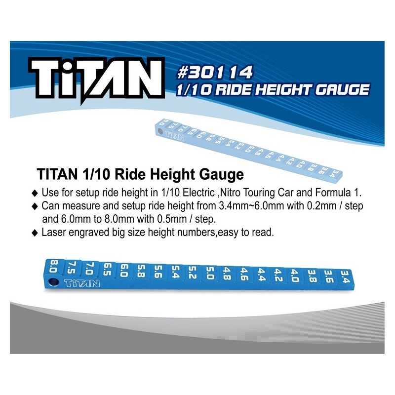 Quick view TEAM TITAN 30109 1/8 eme OFFroad ride height / Droop gauge €19.00 Add to cart wishlist compare Availability: 8 In Stock